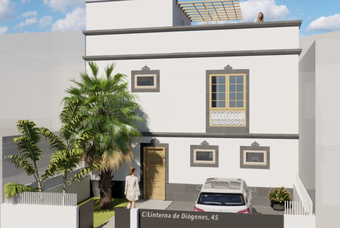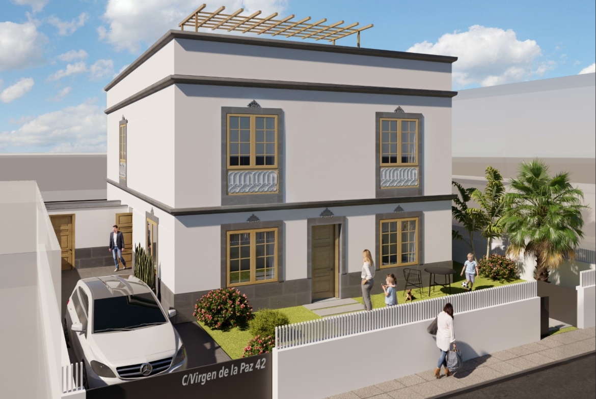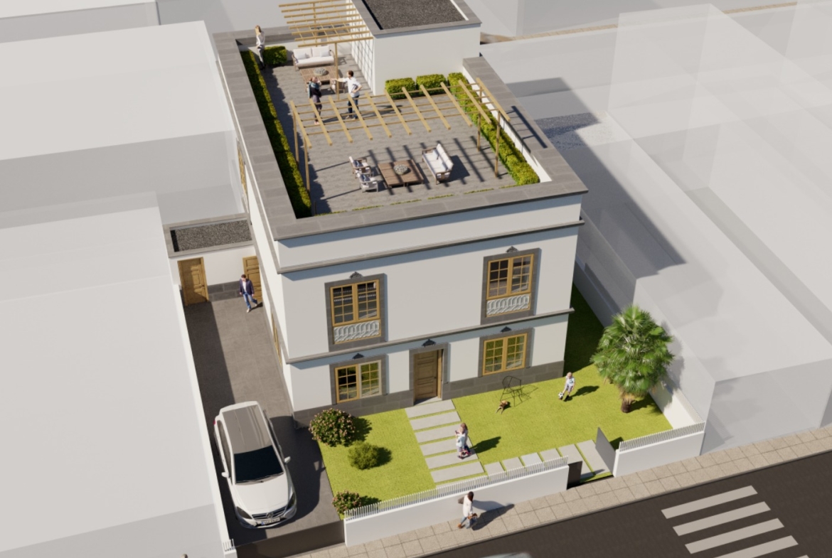 Uno de los puntos fuertes es la azotea totalmente diáfana para el disfrute en familia o con amigos, la cual corresponde a la vivienda en planta alta y el amplio jardín alrededor que correspondería a la vivienda en planta baja. Y por supuesto espacio para aparcar hasta dos vehículos en la propia parcela por cada vivienda.